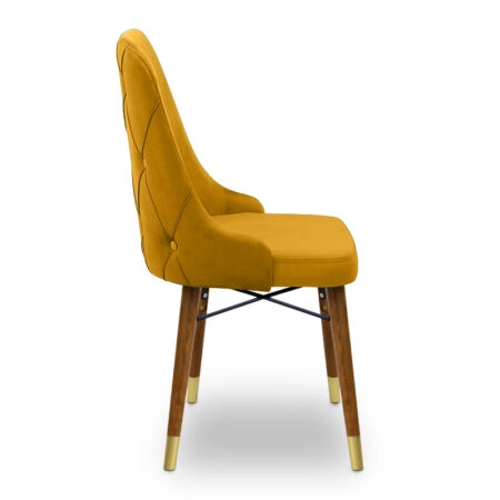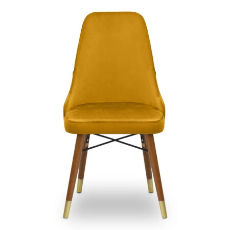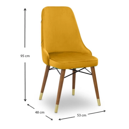Καρέκλα τραπεζαρίας Venus Megapap από βελούδο χρώμα μουσταρδί – καρυδί/χρυσό πόδι 53x48x95εκ.