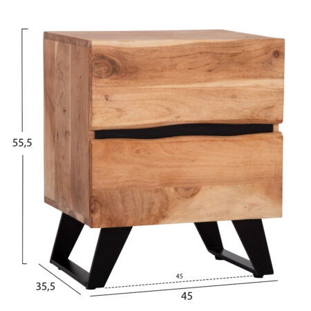ΚΟΜΟΔΙΝΟ ALICIA ΜΕ 2 ΣΥΡΤΑΡΙΑ HM8360.21 ΜΑΣΙΦ ΞΥΛΟ ΑΚΑΚΙΑΣ-ΜΕΤΑΛΛΟ 45x35x56Yεκ.