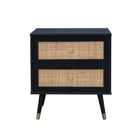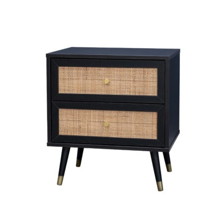 VIENNA ΚΟΜΟΔΙΝΟ ΜΑΥΡΟ ΜΕ RATTAN 50x39xH54,8cm