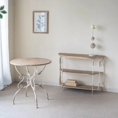 Artekko Alcott Κονσόλα Ραφιέρα Ξύλο Ελάτης Μέταλλο Λευκή Πατίνα (110×35.5×81.5)cm