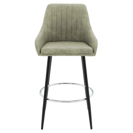 Σκαμπό bar Cody μεταλλικό μαύρο-ύφασμα ανοιχτό γκρι antique