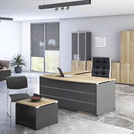 Γραφείο εργασίας επαγγελματικό Lotus αναστρέψιμο φυσικό-ανθρακί 180x160x75εκ