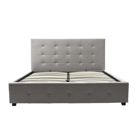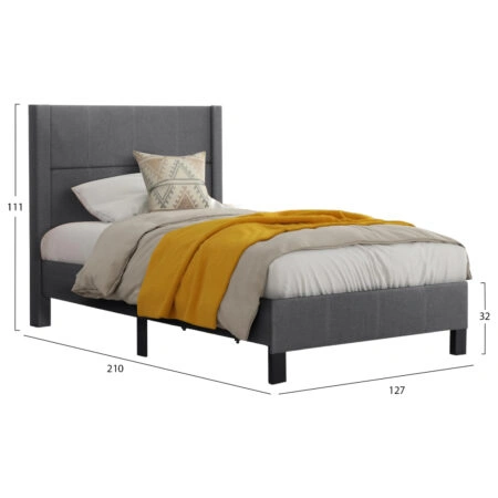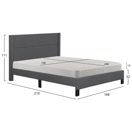 ΚΡΕΒΑΤΙ SOLEDAD ΑΠΟ ΓΚΡΙ ΥΦΑΣΜΑ HM644.01 ΓΙΑ ΣΤΡΩΜΑ 150×200 εκ.