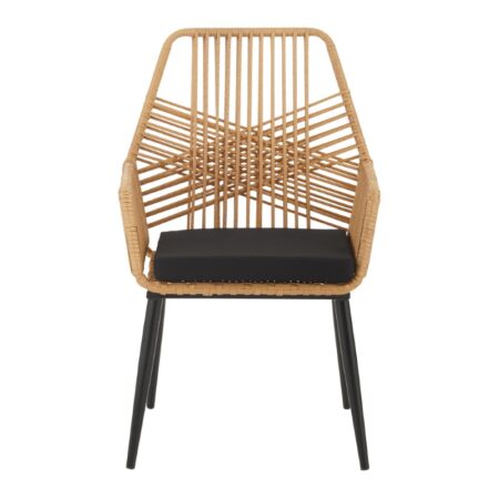 Πολυθρόνα Tanish rattan φυσικό-πόδι μαύρο μέταλλο 58×58.5×87εκ