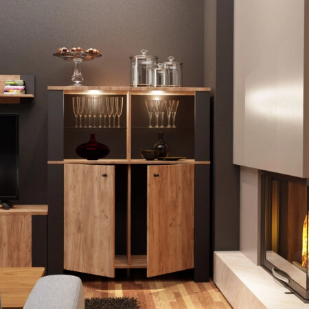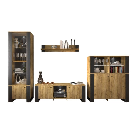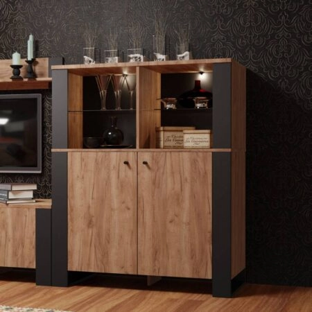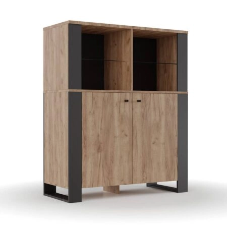 Μπουφές Pluton Ανθρακί-Χρυσό Δρυς 90x40x151cm
