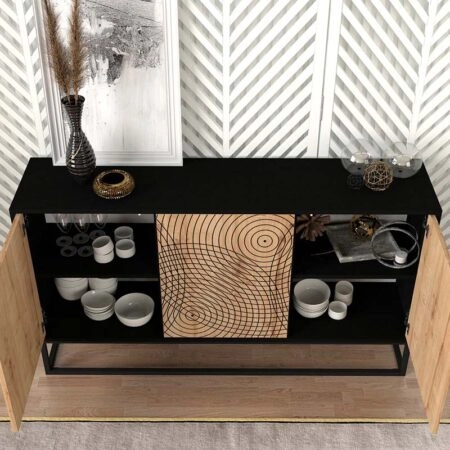 Μπουφές μελαμίνης Themis χρώμα μαύρο – sapphire oak 150x35x83,6εκ.