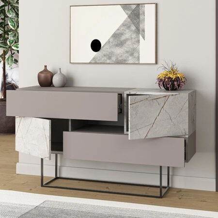 Μπουφές Υλικό: ΜΟΡΙΟΣΑΝΊΔΑ ΜΕ ΕΠΕΝΔΥΣΗ ΜΕΛΑΜΙΝΗΣ CARTA - ΜΕΤΑΛΛΟ Χρώμα: WOTAN OAK - ΓΚΡΙ…