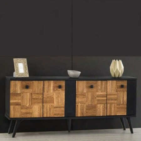 Μπουφές Υλικό: ΜΟΡΙΟΣΑΝΊΔΑ ΜΕ ΕΠΕΝΔΥΣΗ ΜΕΛΑΜΙΝΗΣ CARTA - ΜΕΤΑΛΛΟ Χρώμα: RIVIERA OAK - ΜΑΥΡΟ…