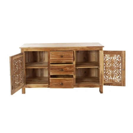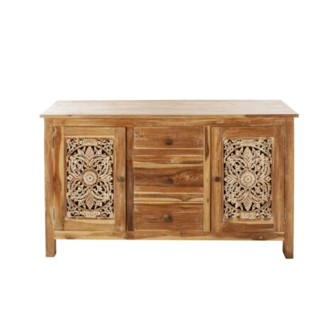 Artekko Magnus Ξύλινος Μασίφ Σκαλιστός Μπουφές σε Φυσική Απόχρωση (140x50x80)cm