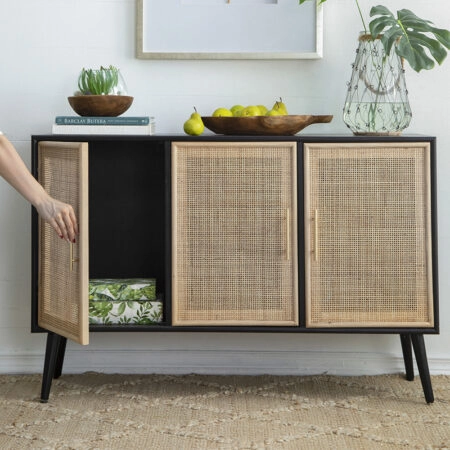 VIENNA ΜΠΟΥΦΕΣ ΜΑΥΡΟ ΜΕ RATTAN 120x39xH75,5cm