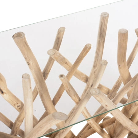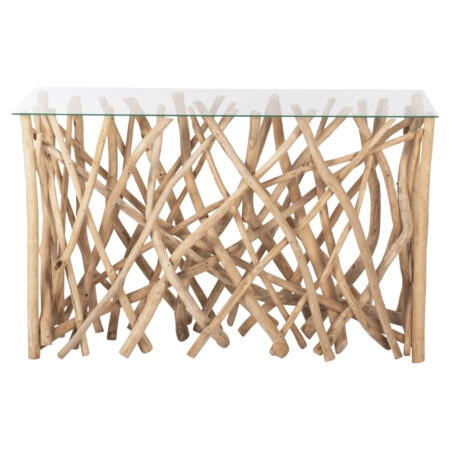 ΚΟΝΣΟΛΑ ΣΕ ΡΟΥΣΤΙΚ ΣΤΥΛ ΜΑΣΙΦ ΞΥΛΟ ΤEAK & ΓΥΑΛΙ ΦΥΣΙΚΟ 120X35X75Yεκ.HM9373