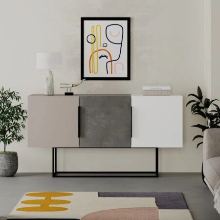 Μπουφές Estella γκρι antique-μόκα-λευκό 150x42x79.5εκ
