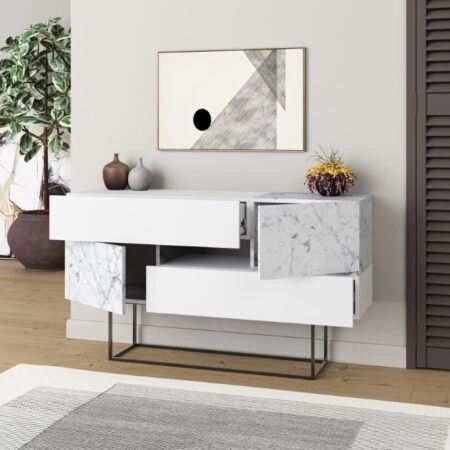 Μπουφές Roberta μελαμίνης λευκό μαρμάρου 145x40x82εκ