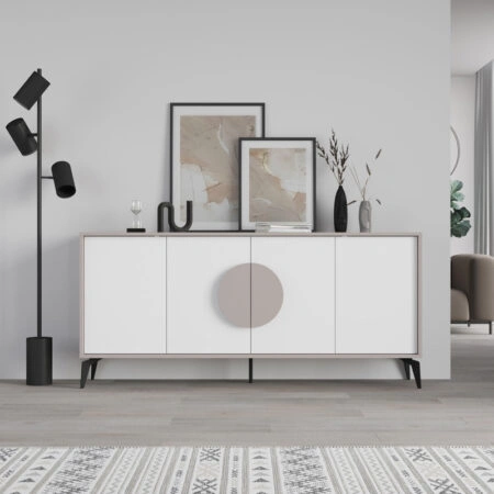 Μπουφές Gora σε λευκή με μόκα απόχρωση 180×35.6×82εκ