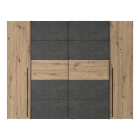 Ντουλάπα ρούχων Verzo τετράφυλλη oak-ανθρακί μελαμίνης 270.5×61.5×210.5εκ