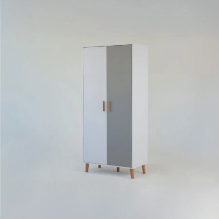 Ντουλάπα Timmy 2D2S Λευκό-Γραφίτη-Γκρι 90x50x199cm