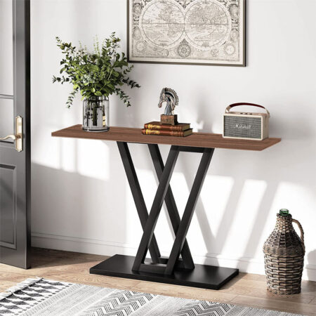 Κονσόλα Wirmo καρυδί μελαμίνης-πόδι μαύρο μέταλλο 110x30x80εκ