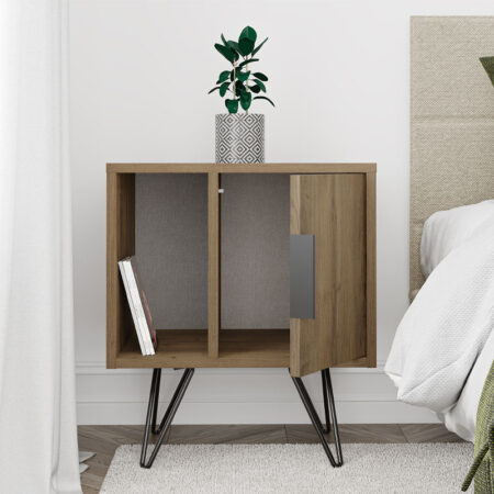 Κομοδίνο μελαμίνης Glynn χρώμα ανοιχτό καφέ 50,2×44,6×60εκ.