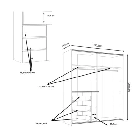 Ντουλάπα ρούχων Gotion δίφυλλη λευκό μελαμίνης 200x61x200.5εκ