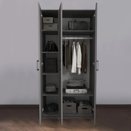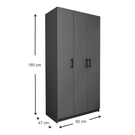 Ντουλάπα ρούχων Dacota μελαμίνης τρίφυλλη χρώμα ανθρακί 90x47x180εκ.