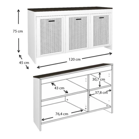 Μπουφές μελαμίνης Galatea χρώμα λευκό – μαύρο rebab 120x45x75εκ.