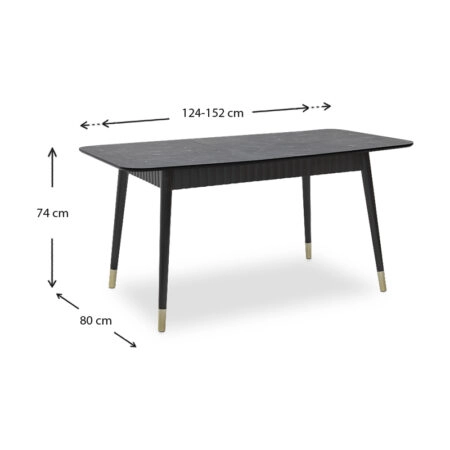 Τραπέζι Nero επεκτεινόμενο από MDF/ ξύλο χρώμα μαύρο εφέ μαρμάρου 124/152x80x74εκ.