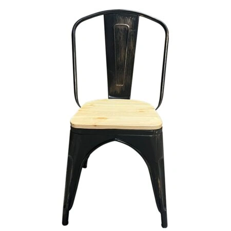 Καρέκλα Βιομηχανικού Τύπου Vintage TOLIKO II Μαύρο Αντικέ/Φυσικό Μέταλλο/Ξύλο 45x53x85cm
