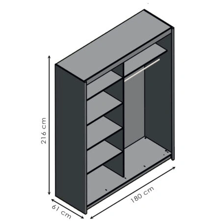 Ντουλάπα ρούχων Elodie δίφυλλη καθρέπτης συρόμενη λευκό 180x61x216εκ