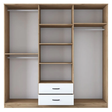 Ντουλάπα ανοιγόμενη με καθρέπτη Wakro λευκό-καρυδί μελαμίνης 210×51.5×210εκ