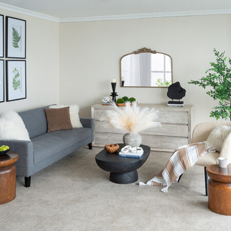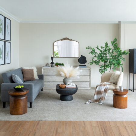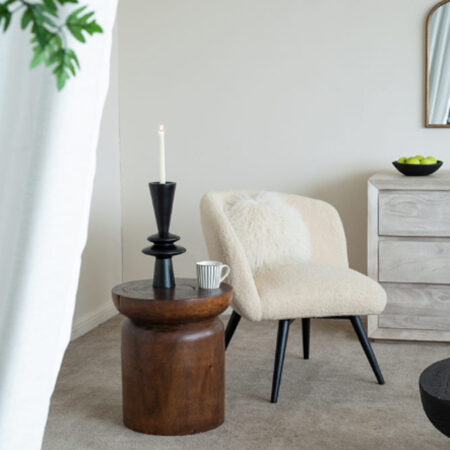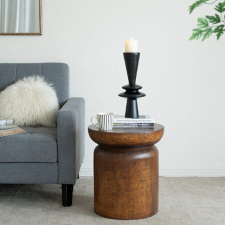Woody Βοηθητικό Τραπέζι με Δίσκο από Ξύλο Mango Μπεζ (41x41x46)cm Σετ/2