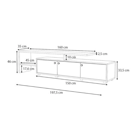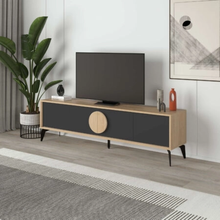 Έπιπλο τηλεόρασης Gora Megapap χρώμα sapphire oak – silky black 180×35,6×51εκ.