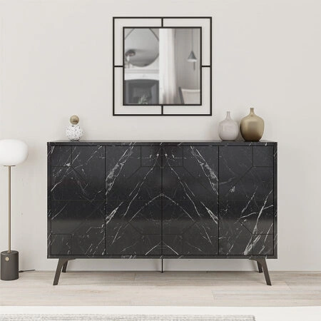 Μπουφές μελαμίνης Dune χρώμα μαύρο εφέ μαρμάρου 123x35x77,4εκ.