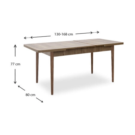 Τραπέζι Bruno επεκτεινόμενο από MDF/ ξύλο χρώμα ανοιχτό καρυδί 130/168x80x77εκ.