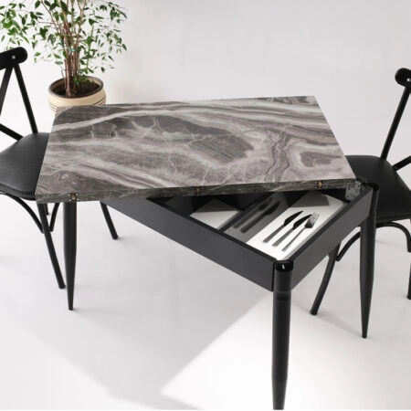 ΤΡΑΠΕΖΙ ΖΙΓΚΟΝ HM9508.02 3ΤΜΧ ΜΕΛΑΜΙΝΗ ΜΑΥΡΟ ΜΑΡΜΑΡΟ-ΜΑΥΡΑ ΜΕΤΑΛ. ΠΟΔΙΑ 35x45x60Yεκ.
