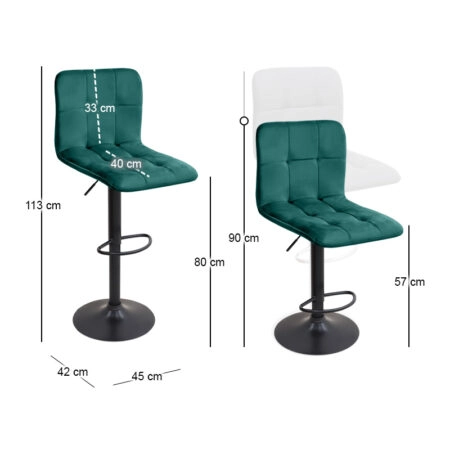 Σκαμπό μπαρ Carmelo Megapap με ρυθμιζόμενο ύψος βελούδο κυπαρισσί – βάση μαύρο ματ 45x42x90/113εκ.