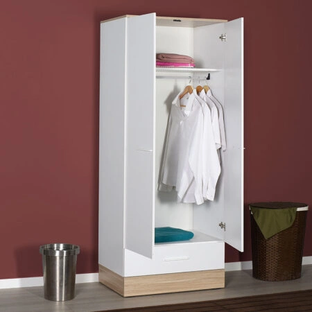 Ντουλάπα ρούχων Prue δίφυλλη λευκό-sonoma 80x52x198εκ