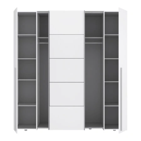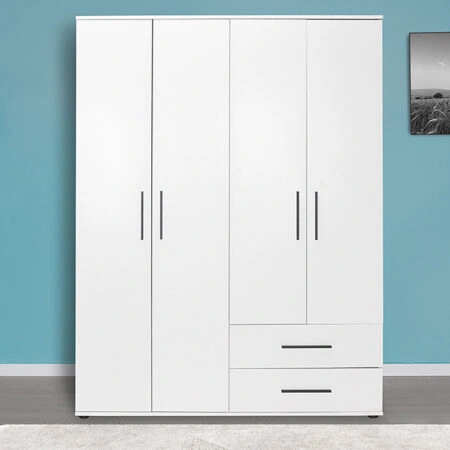 Ντουλάπα ρούχων Dynamic τετράφυλλη με συρτάρια χρώμα λευκό 137x52x187εκ