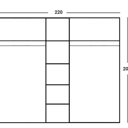 Ντουλάπα ρούχων Luna πεντάφυλλη με καθρέπτη χρώμα wenge 220x52x200