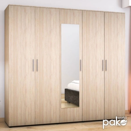 Ντουλάπα ρούχων Luna πεντάφυλλη με καθρέφτη σε χρώμα astra 220x52x200