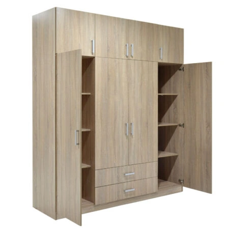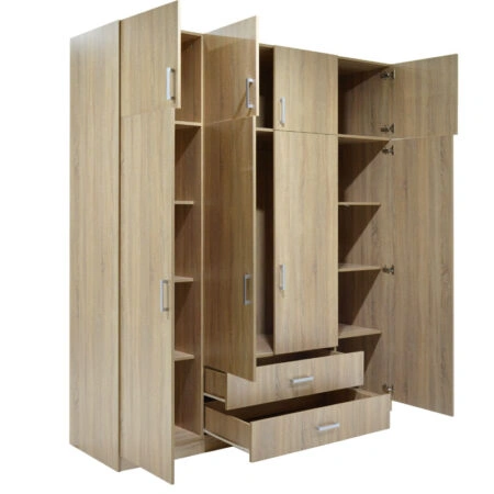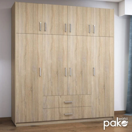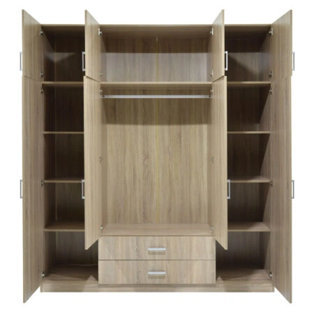 Ντουλάπα ρούχων Royal τετράφυλλη με πατάρι χρώμα sonoma 200x58x230
