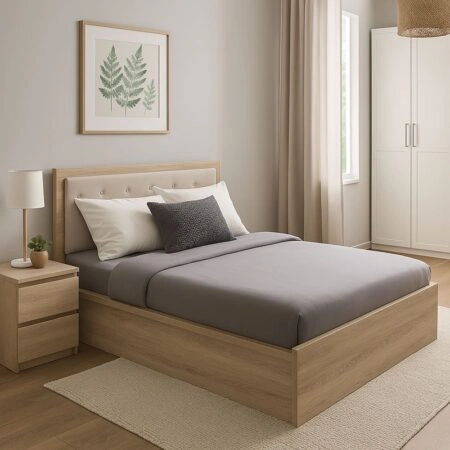 ΚΡΕΒΑΤΙ ΔΙΠΛΟ JILL HM737.03 ΥΦΑΣΜΑ ΣΕ ΜΠΕΖ–ΓΙΑ ΣΤΡΩΜΑ 160×200εκ.