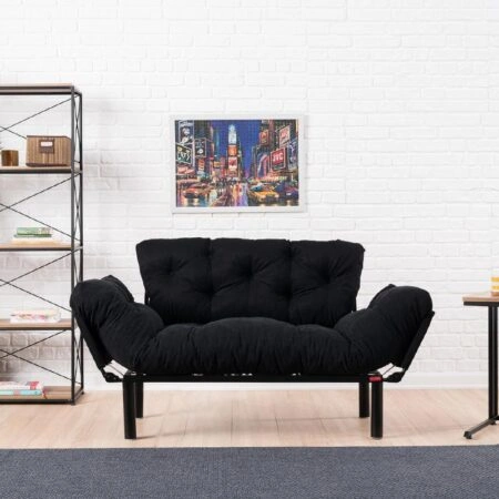 Καναπές κρεβάτι PWF-0018 2θέσιος με ύφασμα χρώμα μαύρο 155x73x85cm
