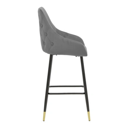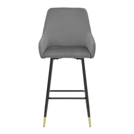 Σκαμπό bar Lithe μεταλλικό μαύρο χρυσό-βελούδο γκρι 47x44x98εκ