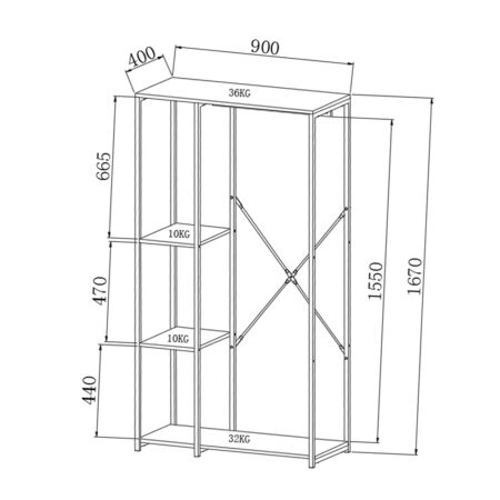 MODE ΝΤΟΥΛΑΠΑ SONOMA ΜΑΥΡΟ 90x40xH167cm