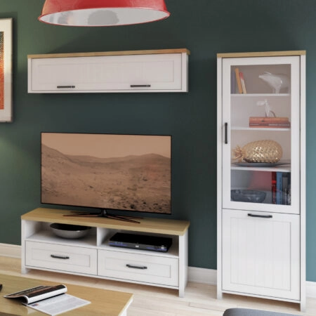 Σύνθεση Τηλεόρασης VERNE 197.6x45x191.6εκ Λευκό-Φυσικός Δρυς