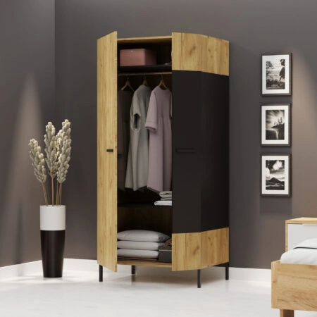 Δίφυλλη Ντουλάπα Santes Χρυσό Δρυς-Γραφίτης 90x60x197.5cm
