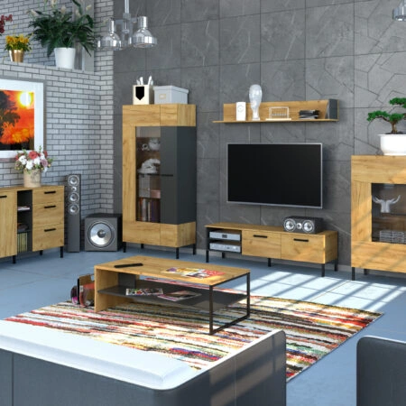 Βιτρίνα Pavi Βελανιδιά 84.3×33.8×197.2cm
