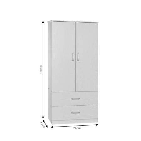 Ντουλάπα ρούχων δίφυλλη Zelia με 2 συρτάρια χρώμα λευκό 79x42x180εκ