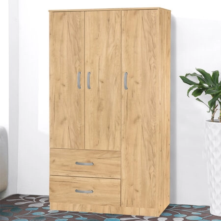 Ντουλάπα ρούχων τρίφυλλη Zelia με 2 συρτάρια χρώμα φυσικό mo 90x42x180εκ