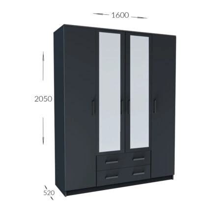 Ντουλάπα Τετράφυλλη Simple 4D2D Γραφίτης 160x52x205cm